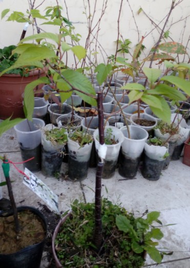 去年嫁接蘋果苗成功後,今年手癢想接接看櫻花苗, 於是用山櫻實生苗當枮木,以河津櫻實生苗當接穗.