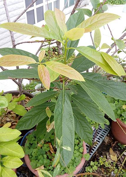 先來看2017年夏天時種下的酪梨種子...種子大,苗也長得比較大. 這是一呎盆.